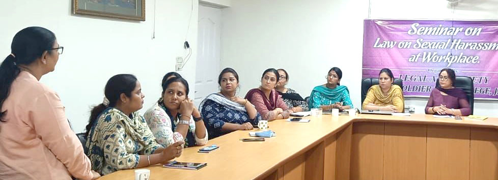 जालंधर। सेंट सोल्जर लॉ कॉलेज की लीगल एड सोसायटी ने परिसर में विभिन्न कॉलेजों की महिला शिक्षकों के लिए कार्यस्थल पर यौन उत्पीड़न के कानून पर एक सेमिनार का आयोजन किया। सेमिनार में कुल 56 शिक्षकों ने भाग लिया। इस सेमिनार में कानून शिक्षक प्रोफेसर अमृतपाल कौर, प्रोफेसर संदीप रानी और प्रोफेसर रूपिंदर कौर विशेषज्ञ के तौर पर शामिल थे।